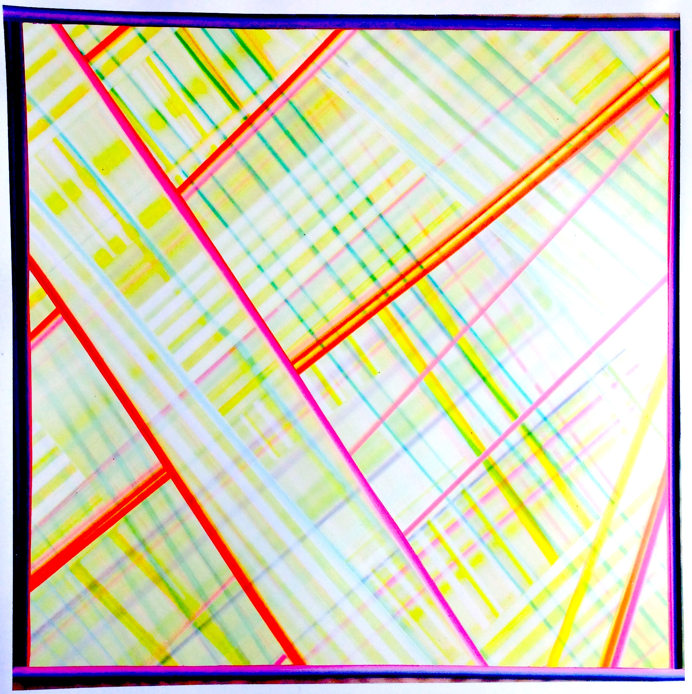 I pull from indigenous patterns in weaving, bar codes, rhythmic vibrations, luminous waves, and the meditative quality of a Tibetan prayer wheel. As a whole, I am looking for a calming, tranquil effect in my work. I realize the individual elements that emerge due to the process of finding their luminosity and recognition by recognizing the same qualities in their neighboring marks.